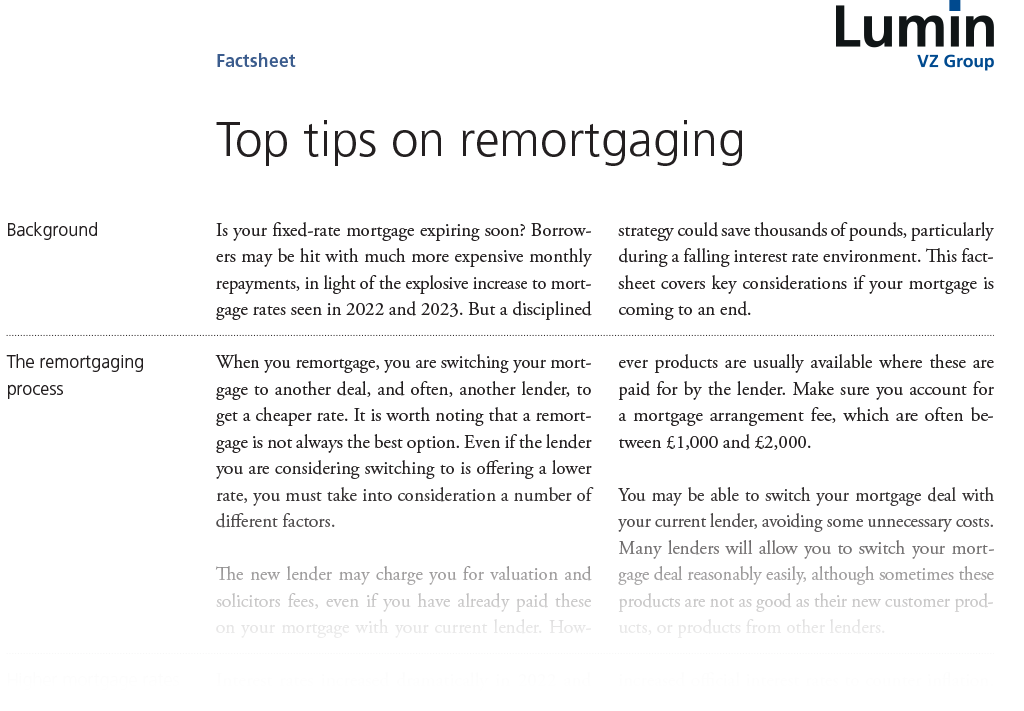 We produce a range of factsheets and mini-guides to help our clients and consumers stay up to date and informed about key financial planning topics.